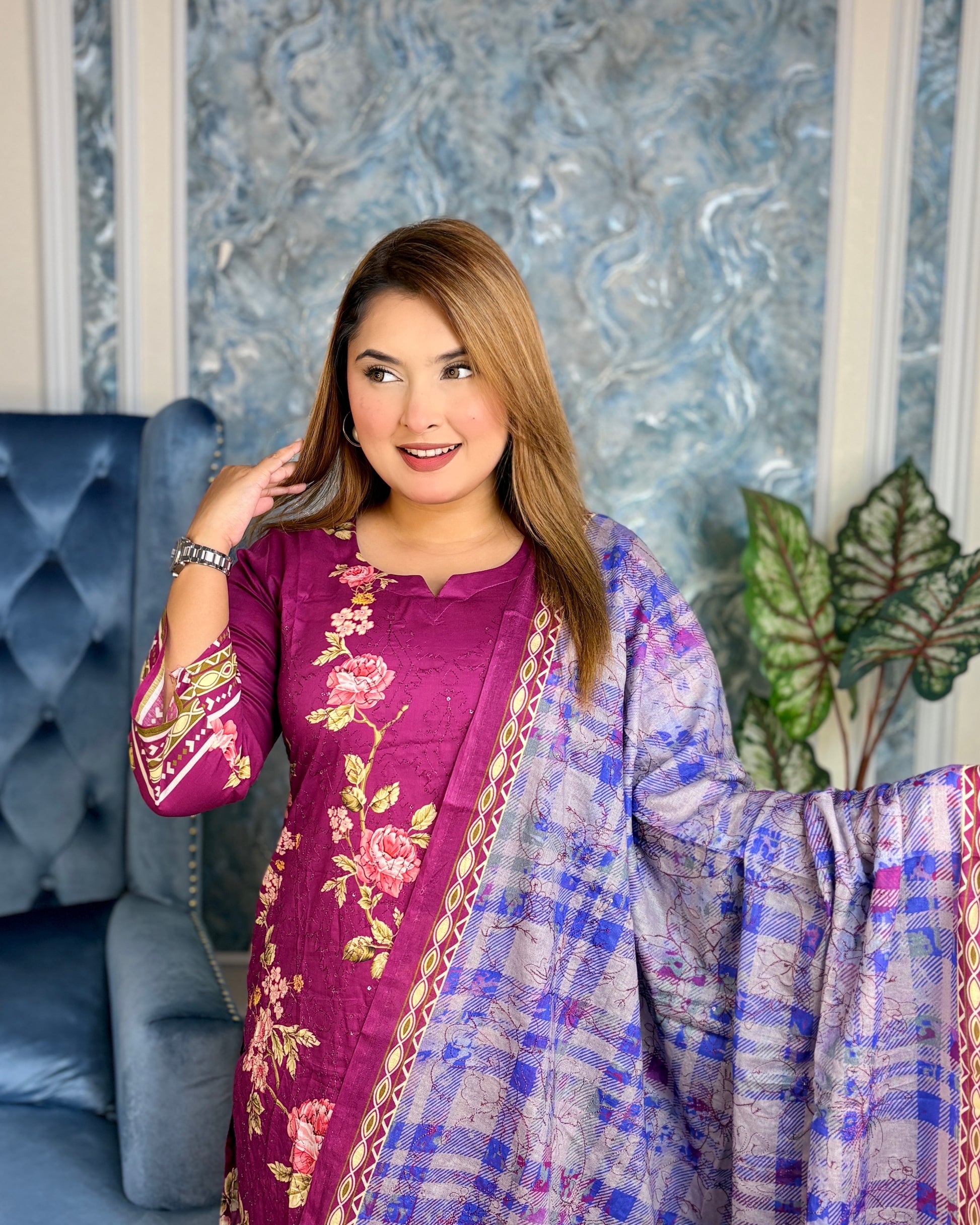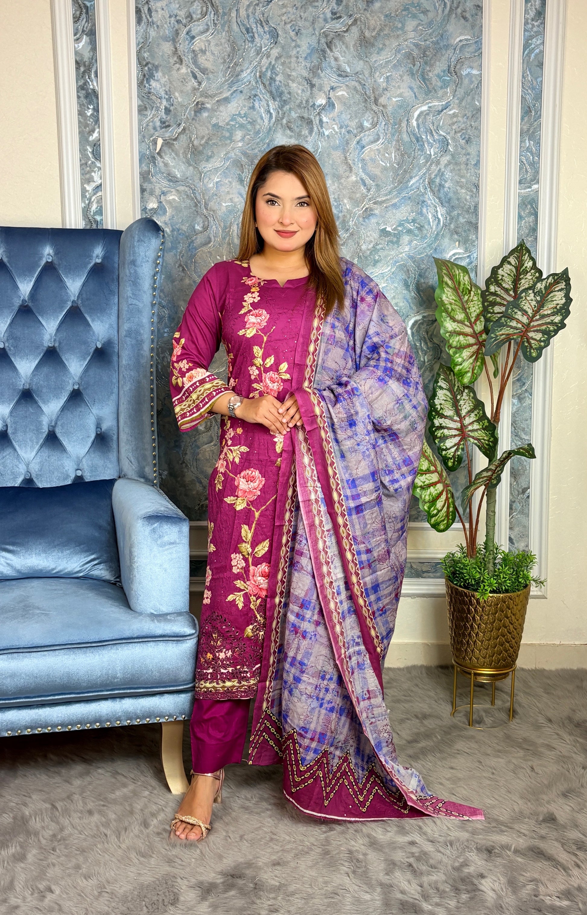 Includes: Kurta, Trouser, and Dupatta (3-Piece Set)